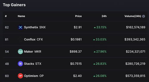 首先,让我们来看看那些昨日涨幅惊人的加密货币。比特币,作为加密货币的领头羊,昨日一度突破了6万美元大关,创下了历史新高。这背后,既有全球经济形势的影响,也有投资者对加密货币未来发展的信心。
