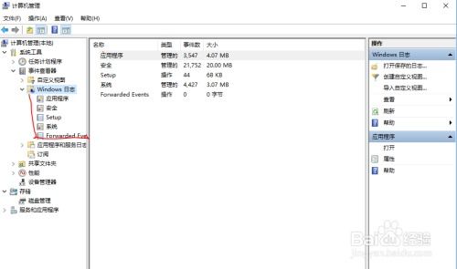 打开“事件查看器”后,可以看到以下五个日志类别: