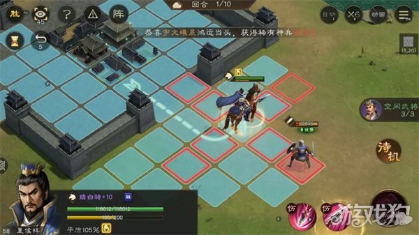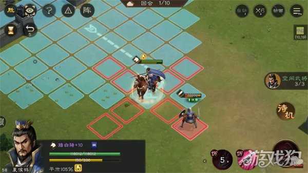 开局夏侯惇都到回归地形,攻击敌军,秒掉。