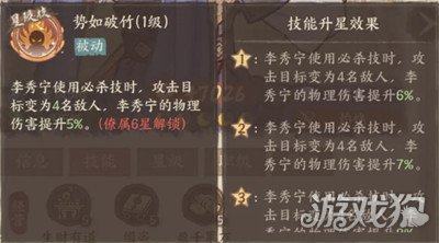 次选技能:【势如破竹】(4人攻击 10%物理增伤)