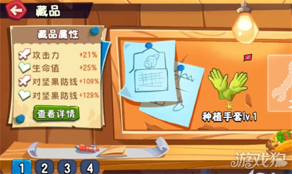 在拿到藏品之后,别忘记还要去逛一下藏品馆,看清楚所有藏品的总加成效果。例如可以增加多少生命值,还有全队攻击力,对于坚果防线有多少强化,这些其实一目了然。而且藏品还可以升星,每一次升星都会消耗一些不同种类的产品。在升星之后就可以解锁新的词条等级上限也可以迅速的提高。有一些产品在申请之后就可以有效增加坚果防线的攻击科技等级,在一开始还是比较有优势的。那接着再给大家分享一下搭配的方法,优先选择三星级的种植手套,还有二星级的松土助手。一个可以增加植物的生命值,一个可以提升治疗量。