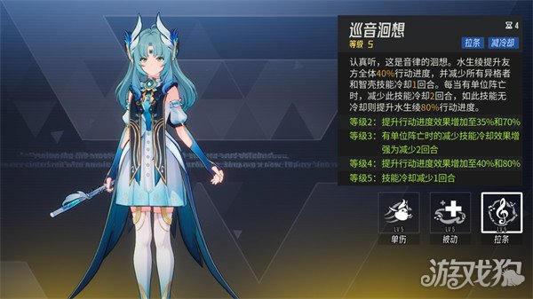 终结技是水生绫的核心技能,主动使用时拉条全体并减少己方所有异格者技能与智壳冷却一回合。当敌方单位阵亡时,减少此技能2回合冷却,如果无法减少,则拉条自身80%