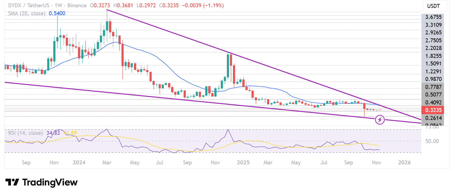 此次回购方案的批准正值DYDX价格走势图的关键时刻,该股在经历了数月的剧烈下跌后,目前正处于触底反弹阶段。