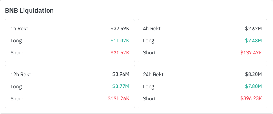 BNB的技术指标显示,随着清算事件惩罚多头,该山寨币可能会进一步下跌。