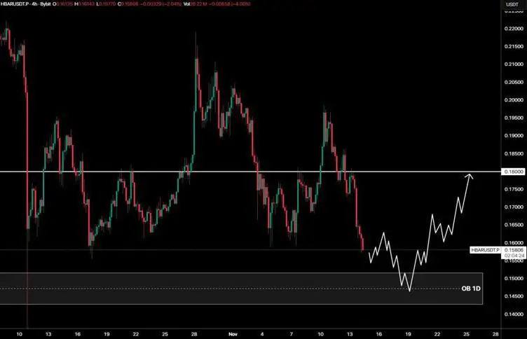 Hedera 的价格正接近 0.1428 美元至 0.1516 美元的关键一日订单区间,这可能会大幅改变价格走势。守住这个位置至关重要,因为它可能提供支撑,推动价格突破 0.18 美元附近的下一个阻力区域。