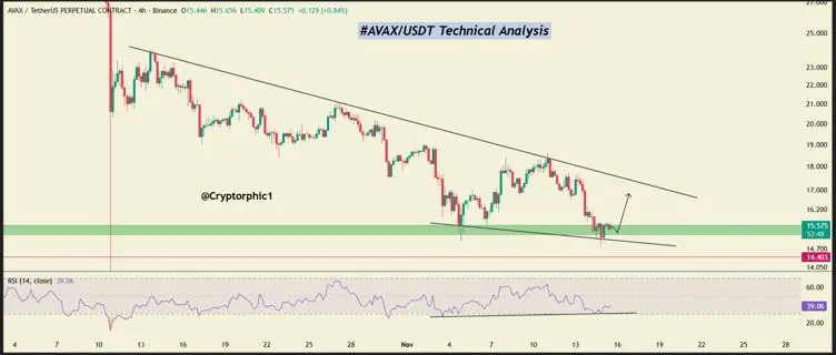 流动性错觉。Avalanche 目前股价徘徊在 15 美元至 15.5 美元的关键买入区间。RSI