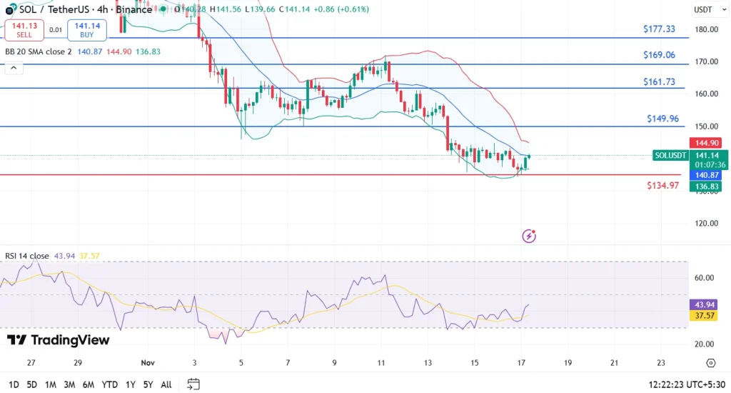 目前对SOL加密货币而言,哪些技术指标最为关键?相对强弱指数 (RSI) 为 29.9,表明市场处于超卖状态,而移动平均收敛/发散指标 (MACD) 为 -1.99,进一步强化了下跌动能。需要关注的关键价位包括支撑位 134.97 美元和阻力位 149.96 美元至 161.73 美元。