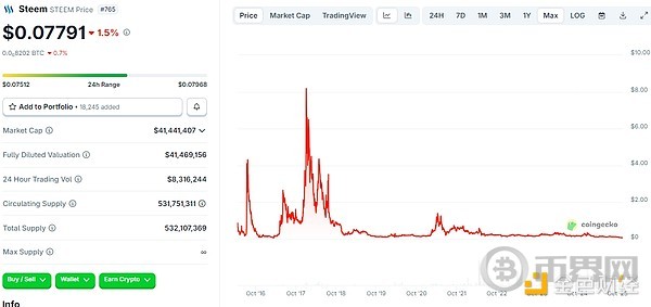 2017 年 3 月,技术核心人员 Daniel Larimer 退出了Steemit,使其技术开发变慢(在离开Steemit后,BM投身于EOS项目)。且Steemit 可以吸引大量用户的原因在于其代币奖励机制,在2018年1月创下历史高点逾8美元之后,不断下跌,截至发稿仅为0.07791美元,难再吸引用户目光。另外,面对后起之秀Farcaster、Friend.tech等的竞争,Steemit再度回天乏术。