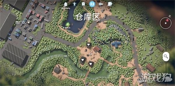 2、到农舍区域后,只要我们带3瓶水(自带)去屋顶是深色的3个房子里去埋就可以了,每个埋一个(下图标注爱心位置)。