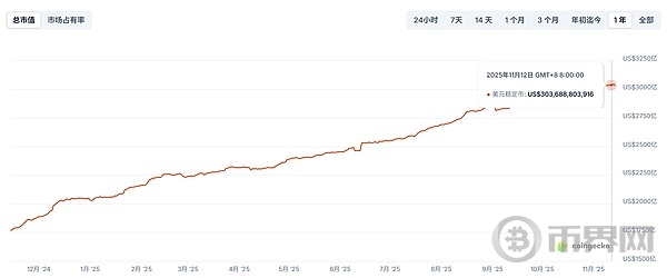 而经历了多年来的膨胀,CoinGecko 数据显示,截至 11 月 14 日,全网稳定币流通量已超过 3000 亿美元,其中 USDT 以 1839 亿美元位列第一,USDC 以 757 亿美元排名第二,两者体量总和接近 2600 亿美元,依然占据绝对优势。
