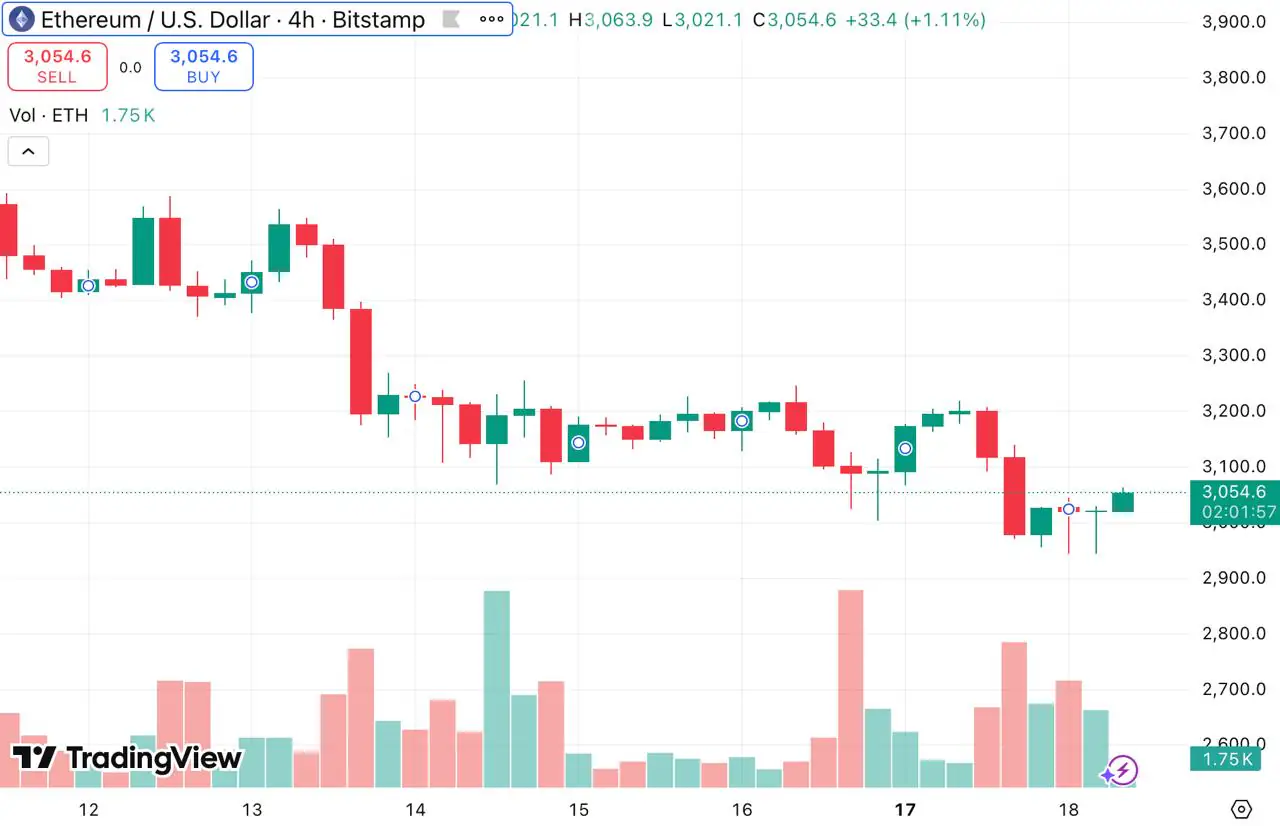 这一预测并未实现,因为今天以太坊的价格为 3.030 美元,这意味着在过去 5 天内下跌了 12.09%。