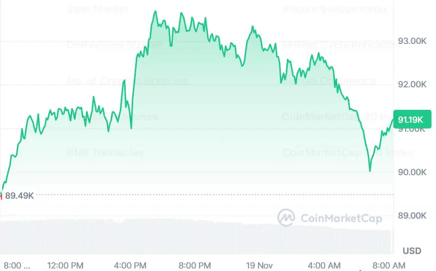 与此同时,本周最激动人心的加密货币新闻之一是比特币在前一天跌至 89,000 美元附近后反弹至 92,000 美元,这激发了市场的看涨情绪。