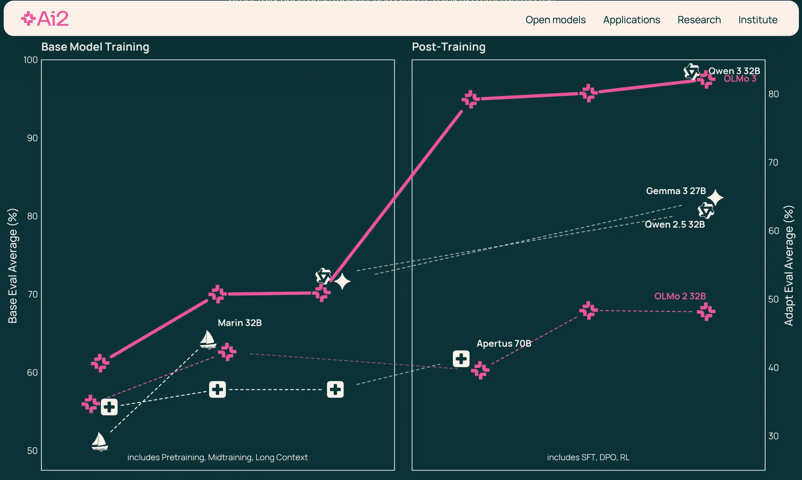 艾伦人工智能研究所反驳道:“别急。”奥尔莫 3Olmo 3 被誉为“最佳完全开源的基础模型”,并拥有完全的透明度,包括其训练数据和代码。