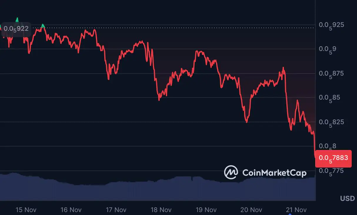 目前的柴犬价格预测反映出市场日益增长的谨慎情绪,因为 SHIB 的交易价格为 0.00000788 美元,在过去 24 小时内下跌了 9.21%。市值