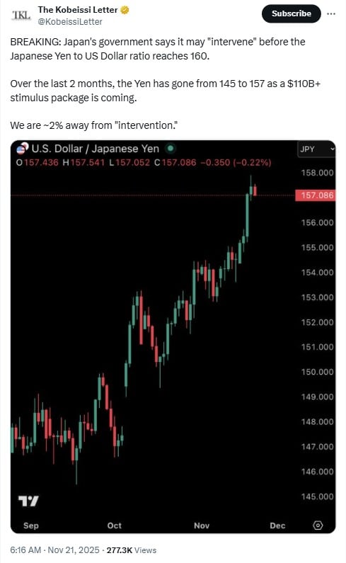 此外,刺激计划公布后,日元大幅下跌。美元兑日元汇率跌至2025年1月以来的最低水平,因为投资者押注刺激计划预示着日本央行将进一步增发货币并采取鸽派立场。
