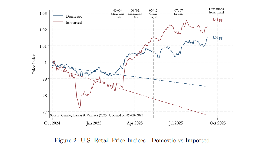 新的学习美国物价调查发现,关税使进口商品的价格比原本应有的价格高出 5.44%。