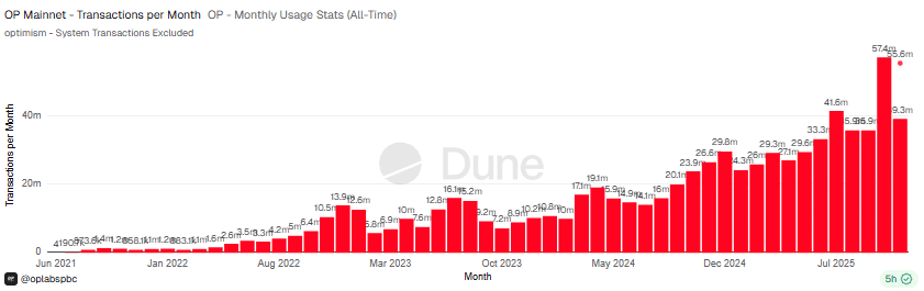 OP 价格下跌并非仅由技术结构和资本轮动所致;链上活动也呈现同样的趋势。