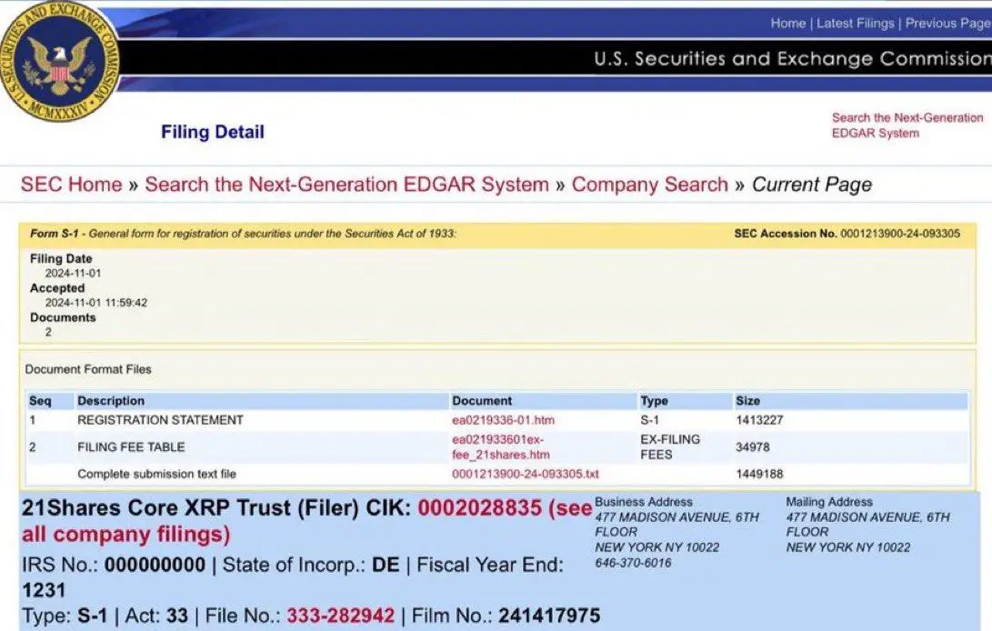 21Shares XRP ETF 今日开始交易,股票代码为 TOXR。待美国证券交易委员会 (SEC) 批准后,Cboe BZX 将上线该产品。这意味着该基金将成为未来几天内进入市场的众多专注于 XRP 的 ETF 之一。