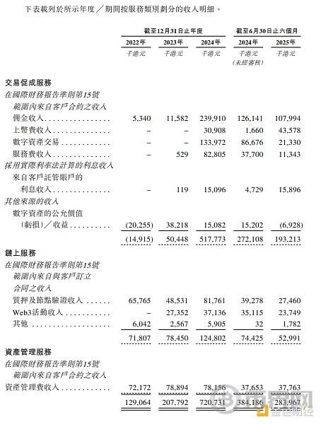 HashKey 的收入来源较为多样,包括:佣金收入、服务收入、上币费收入、数字资产交易、质押及节点验证收入、Web3活动收入、资产管理费收入、数字资产的公允价值收益、利息收入等。