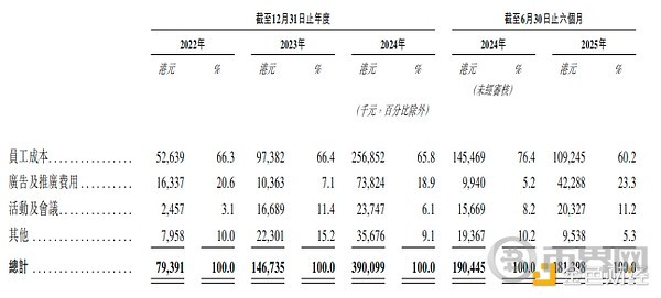其中IT开支占HashKey研发开支的大部分。于2022年、 2023年、2024年以及截至2024年及2025年6月30日止六个月,HashKey的研发开支占总收入的百分比分别为191.5%、156.0%、77.2%、67.3%及79.3%。