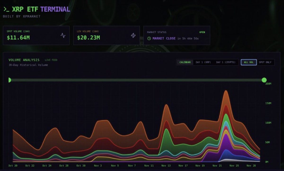 XRP交易所交易基金(ETF)交易活动出现大幅飙升!12月1日开盘时,这些ETF的现货交易量达到1160万美元。这一早期交易高峰表明投资者对新推出的XRP投资产品兴趣日益浓厚,市场势头强劲。