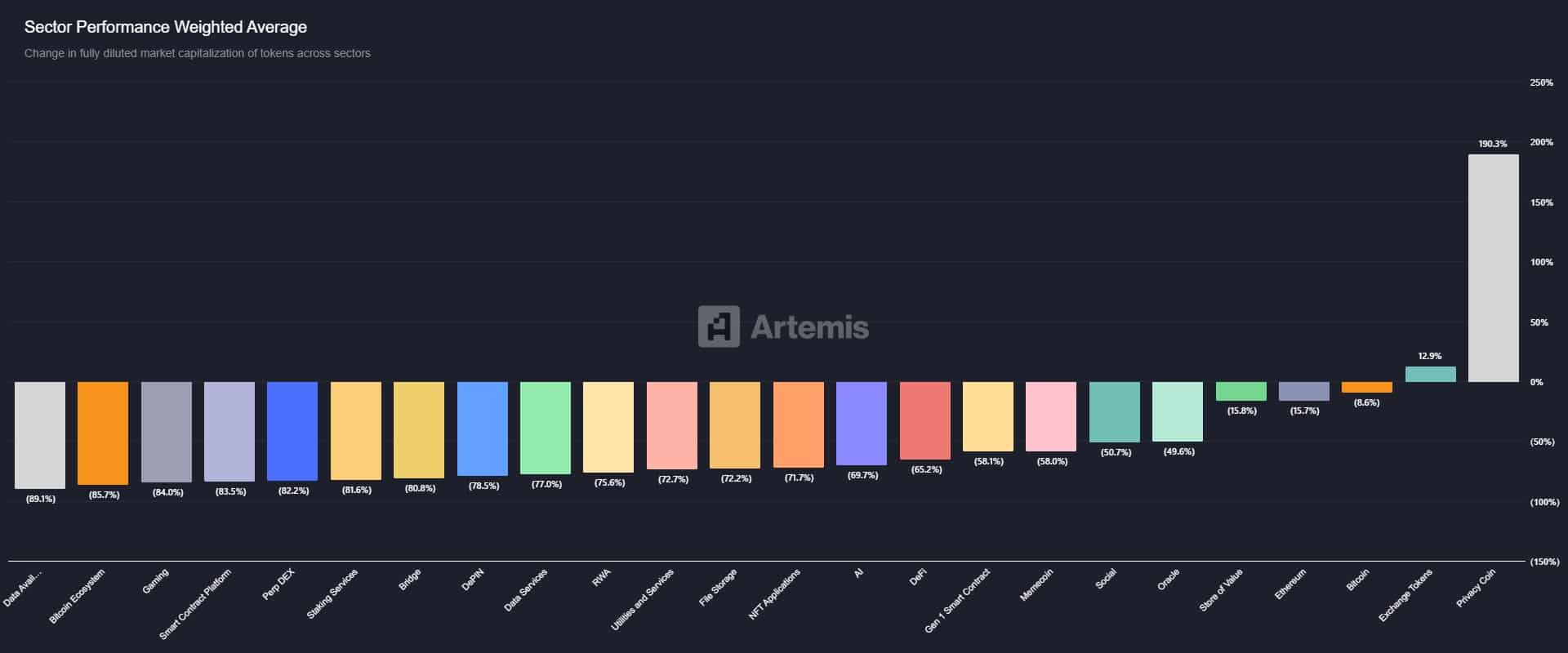 事实上,隐私领域是今年唯一实现盈利的领域(盈利192%),让模因币热潮消退。