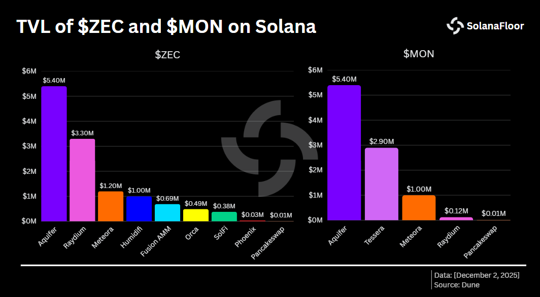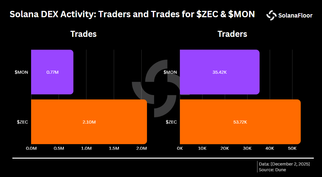 最近的两个例子印证了这一模式。$MON 和 $ZEC 近几周都在 Solana DEX 上可以交易了。$MON 是通过桥接交易实现的。虫洞通过日出与此同时,该代币正式上线。单子主网上线后,Solana 用户可以立即访问并交易 $ZEC。$ZEC 在 Solana 上的交易于 10 月中旬开始,随着流动性扩散到多个流动性池,交易量迅速增长。