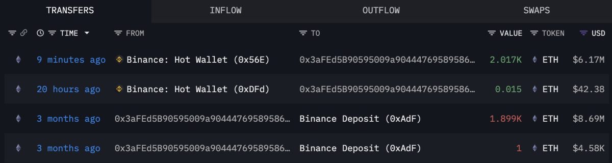 同一个钱包现在以每股 3,061 美元的价格回购了 2,017 个 ETH,总计花费 617 万美元,有效地增加了其持有量,同时花费了更少的资金。