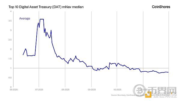 从很多方面来看,确实如此。2025年夏季,许多这类公司的交易价格是其资产净值的3倍、5倍甚至10倍,而现在却都在1倍甚至更低的水平徘徊。接下来,市场走向将出现分歧:要么价格下跌引发无序抛售,导致市场崩盘;要么公司继续持有资产,等待价格回升。我们倾向于后者,尤其是考虑到宏观经济背景正在改善,以及 12 月可能降息,这将更广泛地支撑加密货币市场。