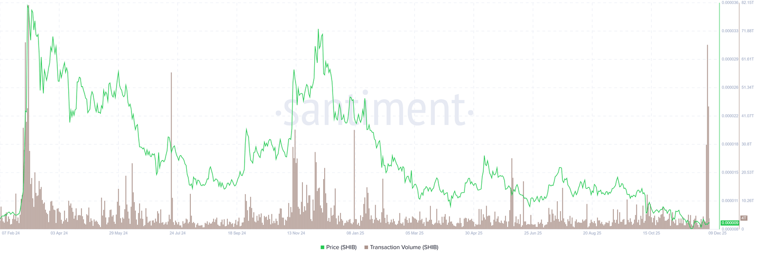 SHIB交易量图表。来源:Santiment