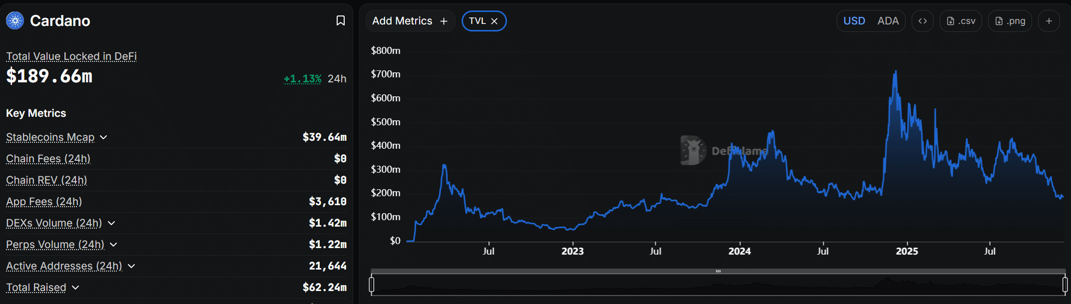 卡尔达诺的日线图也呈现出类似的趋势。ADA价格持续被困在一个缓慢下降的通道内,其特点是高点不断降低,且在关键移动平均线处持续受阻。