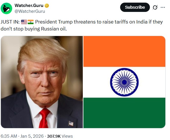 华盛顿和新德里之间日益加剧的摩擦不仅仅是一场政治争端;它表明,如今全球大国如何将交易作为主要武器。特朗普总统的警告“快速”提高关税显然旨在迫使印度放弃俄罗斯石油,同时也凸显了去中心化资产为何如此受欢迎。与此同时,传统的交易渠道面临中断,法定货币也受到制裁的冲击。