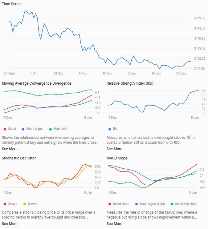 最值得注意的是,MACD直方图在 1.87 处转为正值,而 7 天相对强弱指数(RSI)攀升至 74.7,表明上行压力强劲。与此同时,突破 200 小时简单移动平均线(简单运动抗体接近 134 美元似乎也触发了算法买入和空头回补,加速了这一走势。