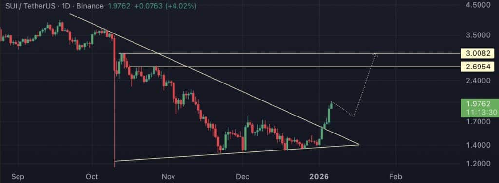价格强势反弹,重新站上趋势线,表明卖方力量正在减弱,逢低买盘迅速涌入。只要SUI加密货币价格守住突破区域,继续向2.70美元关口迈进的可能性就很大;如果涨势持续强劲,3.00美元将成为下一个主要阻力位。